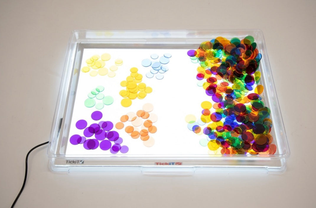 A combination set containing our A3 Light Panel and A3 Light Panel Cover. Our LED light panels are an essential and versatile cross-curricular resource. With an anti-trip magnetic connector and 3 light level settings they provide a cool, clean, bright illuminated background and are ideal for the investigation of light, colour and shape, or for focused group work in a wide range of subjects.