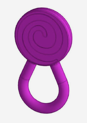 The Chew Lolli Swirl features a raised swirly textured head and a smooth loop, making it a versatile oral and sensory tool. It can be used for children as a chewing outlet or is suitable for any individual craving sensory input.