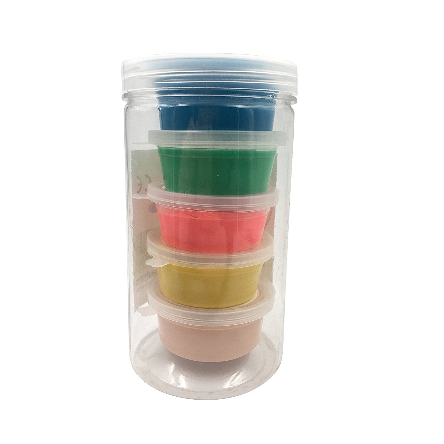 Tubs of 57 g. each: Tan=Extra Soft, Yellow=Soft, Red=Soft/Medium, Green=Medium, Blue=Firm