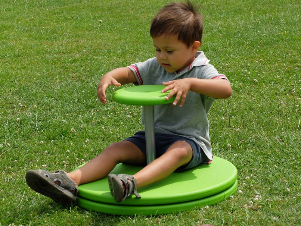Children will be recruiting core muscles as they discover how to coordinate their hands and arms in order to manoeuvre themselves around the central post, providing a sense of achievement and fun as they make themselves go around faster. However they are always in control of their speed as the Whizzy Dizzy will only spin as fast as they are pulling on the wheel.